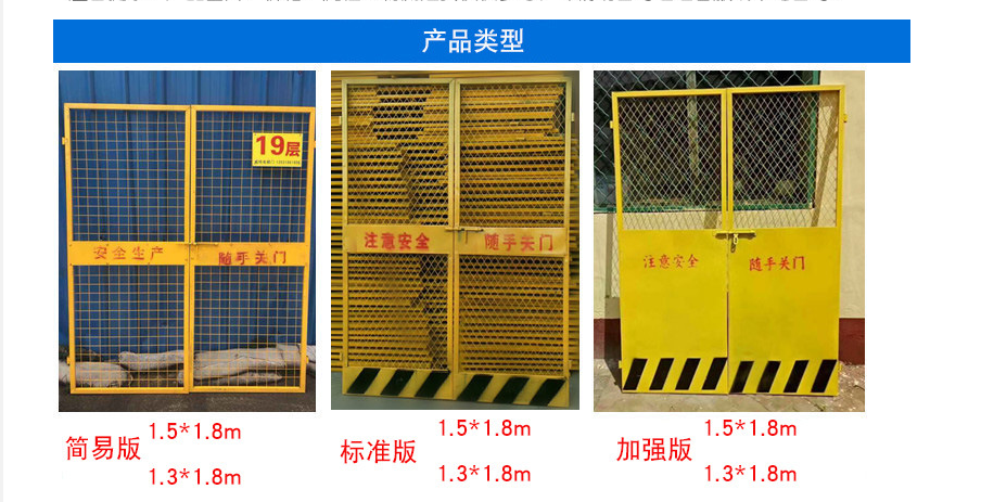 電梯安全門(mén)]的鋼材采用國(guó)家標(biāo)準(zhǔn)材料,嚴(yán)格按照?qǐng)D紙生產(chǎn),焊接點(diǎn)非常牢固,能達(dá)到安全保護(hù)的目的。電梯安全門(mén)一般采用檸檬黃色,門(mén)的下部框架板采用黃色和黑色間隔,使用氬弧焊,強(qiáng)度高,質(zhì)量穩(wěn)定,不易跌落,扭曲。
