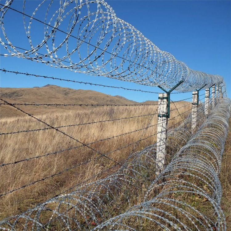 生活小區(qū)圍墻、私人住宅、別墅圍墻、鐵路柵欄加高以及邊境線等的安全防護(hù)。芯線均為2. 5mm,刀片厚度為0.5mm,國(guó)內(nèi)最常用的型號(hào)為BTO-22,刀片長(zhǎng)度22mm,刀片寬度15mm,刀片間距34mm,其他型號(hào)可定做。