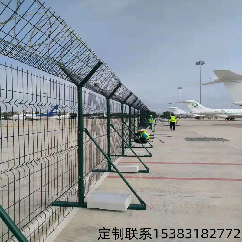 機場圍界的立柱和框架的質量也是一個相對被忽視的領域。一 些正規工廠 采用角鋼和圓鋼或方鋼,但是不同部位使用的角鋼和圓鋼也應該不同。配備刀片式刺絲和刀片式刺繩后,具有高質量機場圍界或護欄網的安全防護性能得到了很好的提高,保證了機場飛行區、巡視區及各區域的安全運行。