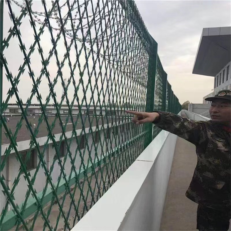 強制隔離戒毒所是將吸毒人員集中戒除吸食、注射毒品的惡習及毒痛的場所,對吸毒者進行戒毒治療的場所。由于中國當前無法實施國外戒毒的醫學防治模式,所以中國現行的政策是以強制隔離戒毒為主。中國的戒毒所分為三類:第一類是公安機關主管的強制隔離戒毒所;第二類是司法行政機關主管的強制隔離戒毒所;第三類是戒毒醫療機構,由衛生部門主管。按規定被強制隔離戒毒的人員在公安機關的強制隔離戒毒場所執行強制隔離戒毒3個月至6個月,所以監獄戒毒所就需要把吸毒者進行隔離,有專門為戒毒所設計的監獄鋼網墻,樣式一般為刀片焊接式鋼網墻,這樣的隔離網防攀爬效果極好,因為網片上都是刀片,有效的防止了越獄的產生,提高了監獄的防范安全標準,刀片焊接鋼網墻,一般分為噴塑及304,或201材質,下面給大家簡單看一下樣式,隔離網的規格也是根據各戒毒所要求強度不同,設計不同的規格尺寸