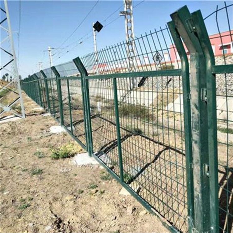 鐵路防護柵欄用途:高速公路、鐵路垃圾填埋場試驗場地、鐵路封閉、高速公路護欄、開發(fā)區(qū)圍界 場區(qū)圍網(wǎng)、體育場圍欄、小區(qū)防護。
