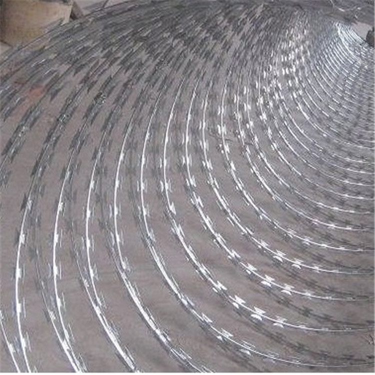 刀刺網(wǎng)也稱為刀片刺絲、刀片剌網(wǎng),是一種新式防護(hù)網(wǎng)。刀刺網(wǎng)具有漂亮、經(jīng)濟(jì)適用、防阻作用好、施工便當(dāng)?shù)葍?yōu)良特征,如今,刀刺網(wǎng)已被普遍應(yīng)用于許多的工礦企業(yè)、園林公寓、邊防哨所、軍事范疇、監(jiān)獄、看守所、政府建筑物和其他的區(qū)域。