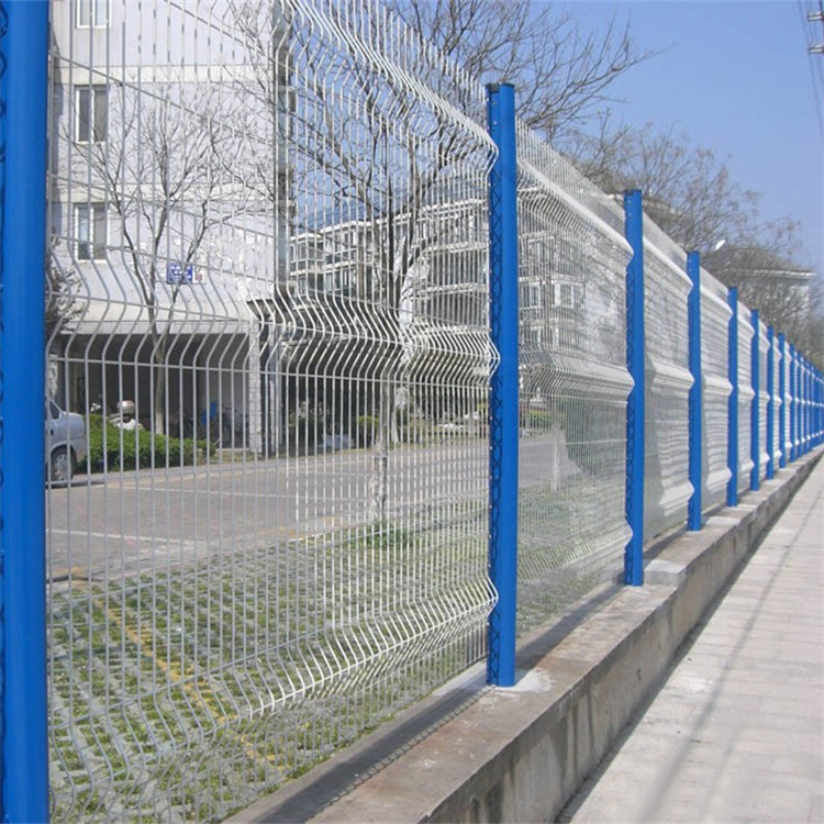 其次,桃型柱護欄網的安裝方式很不普通,網片和立柱不是簡單的通過連接掛件連接,而是在網片做好的時候,通過機器把折彎處的網絲減去,形成一個內凹的形狀,然后在安裝的同時,把內凹的部分關在桃型柱立柱的卡槽內,確保網片和立柱的穩固。